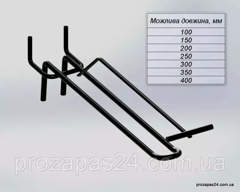 Крючок 200мм черный двойной с ценникодержателем на перфорацию