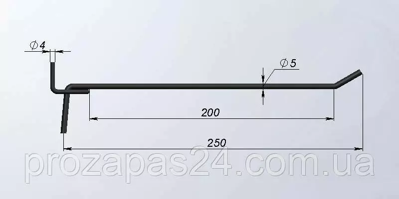 Крючок 250мм черный одинарный с ценникодержателем на перфорацию торговый стеллаж