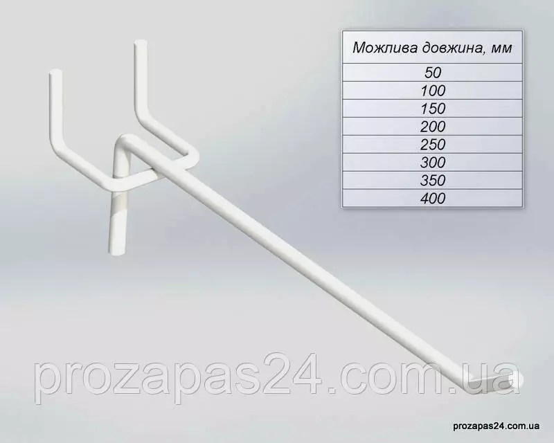 Крючок 300мм белый одинарный на перфорацию сетку торговый