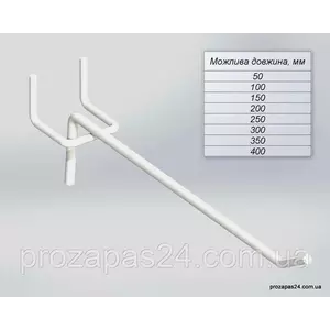 Крючок 350мм белый одинарный на перфорацию сетку торговый