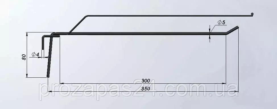 Крючок 350мм черный одинарный с ценникодержателем на сетку