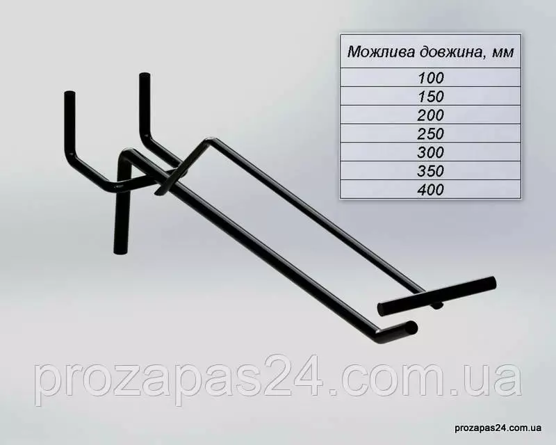 Крючок 400мм черный одинарный с ценникодержателем на перфорацию