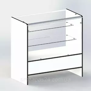 Прилавок торговый из ДСП со стеклянной витриной и полками белый "СТАНДАРТ" АЛ-3.3 88х120х50с алюмин. вставками