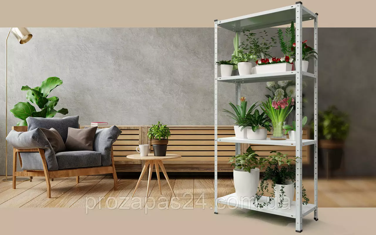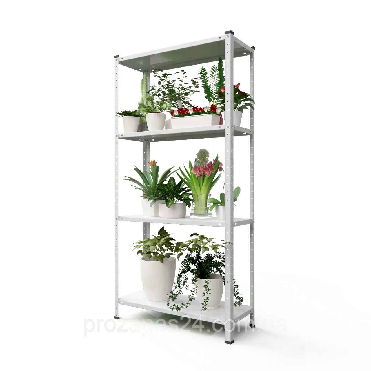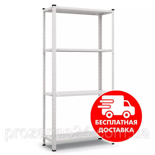 Стеллаж 150х75х30см 4 полки металлический полочный крашенный белый сборной на болтах