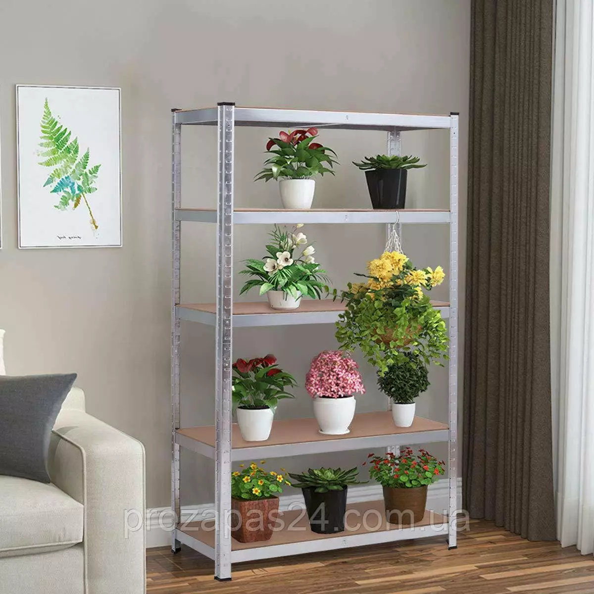 Стеллаж 160х90х40см 4 полки металлический полочный оцинкованный сборной с полками ДСП/МДФ