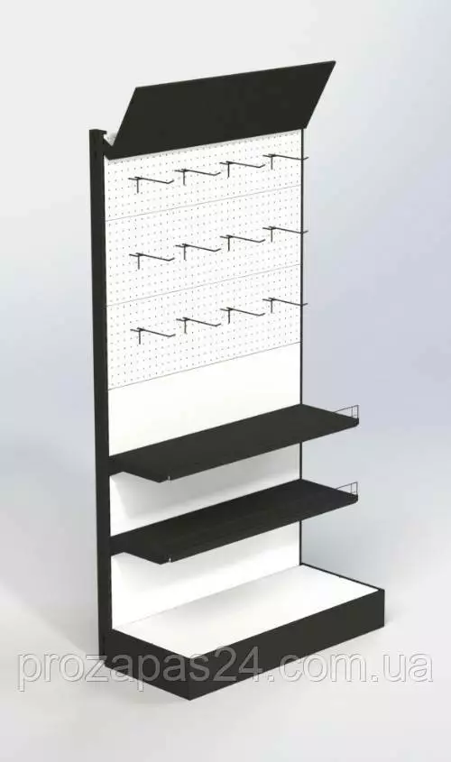 Стеллаж 1970х970мм с перфорированной стенкой под крючки с рекламным фризом торговый пристенный для магазина
