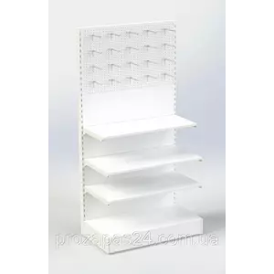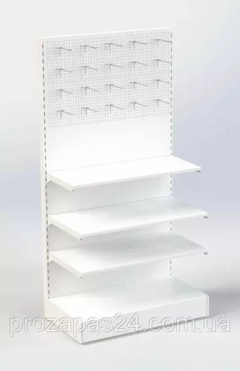 Стеллаж 1970х970мм с перфорированной/сплошной стенкой под крючки, полки торговый пристенный для магазина