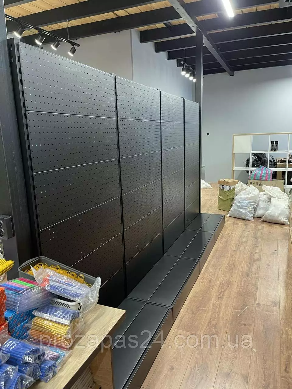 Торговые стеллажи пристенные перфорированные выбор по размерам и цвету